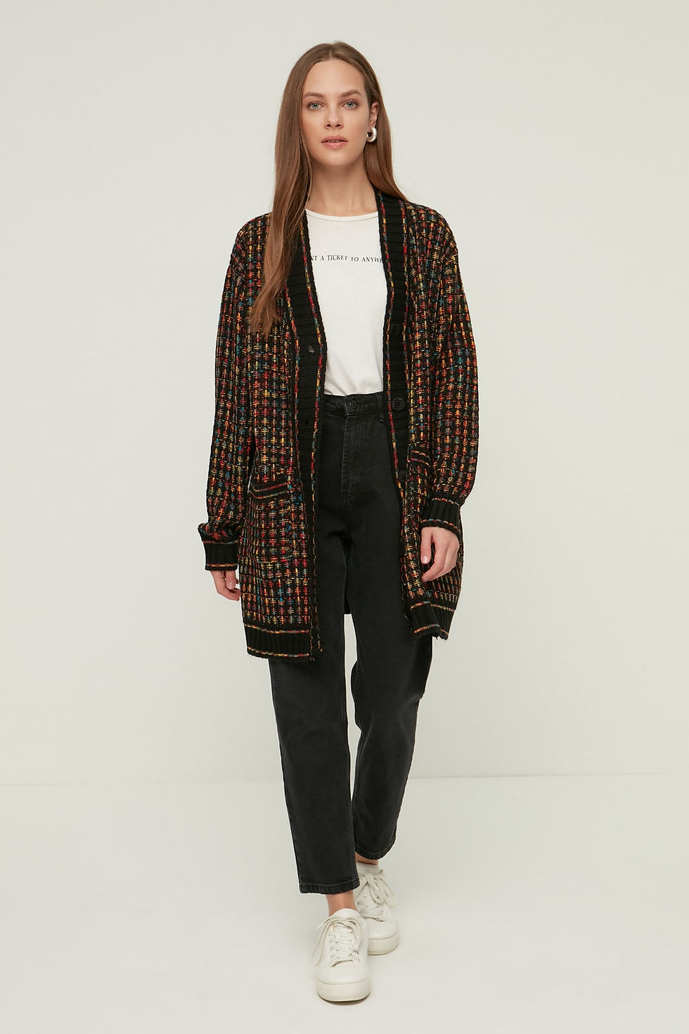 TRENDYOL MODEST Siyah V Yaka Triko Hırka TCTAW22TH0144